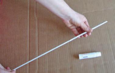 8. Důkladně slepíme, aby se nám rulička nerozlepila. Rulička má jeden konec užší a druhý širší. Délka ruliček je zhruba 42 cm.