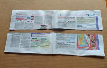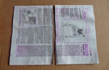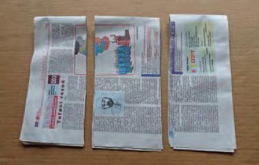 9. Pokud potřebujeme tenčí či delší ruličky, rozstřihneme dvojstranu novin na tři části. Rozměr novin: 42×31,5 cm.