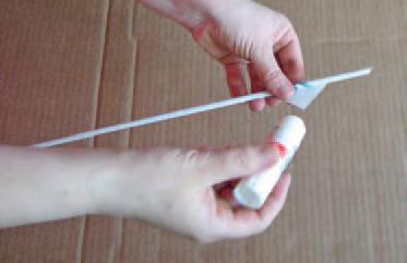 7. Konec papíru natřeme tyčinkovým lepidlem.