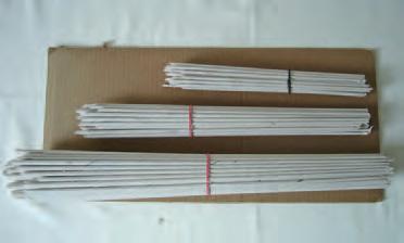 10. Použijeme jen dvě okrajové části. Délka pruhu: 62 cm, šířka: 10–12 cm. Vzniknou nám ruličky dlouhé přibližně 58 cm.