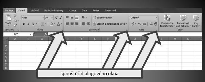 Na každé jednotlivé kartě3 můžete nalézt sekce (nebo také skupiny příkazů), ve kterých se nachází jednotlivé příkazy. Existuje-li u příkazu „rozbalovací“ šipka seznamu, lze ji použít k získání nabídky dalších možností (viz obrázek 1.7), některé ze skupin příkazů také mohou obsahovat (v pravém dolním rohu) tlačítko zvané Spouštěč dialogového okna (viz obrázek 1.8).