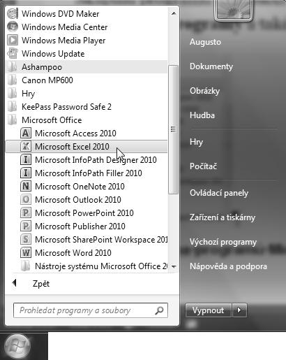 4. A, konečně, klepněte i na Microsoft Excel 2010 (viz obrázek 1.1).