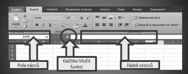 Tlačítko Vložit funkci mezi názvy Pole názvů a Řádek vzorců (viz obrázek 1.9) slouží k vyvolání nabídky funkcí.