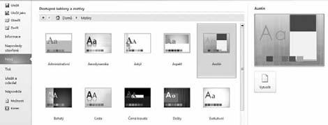 2. Klepněte na tlačítko Motivy. Na kartě Soubor se zobrazí seznam nabízených motivů.