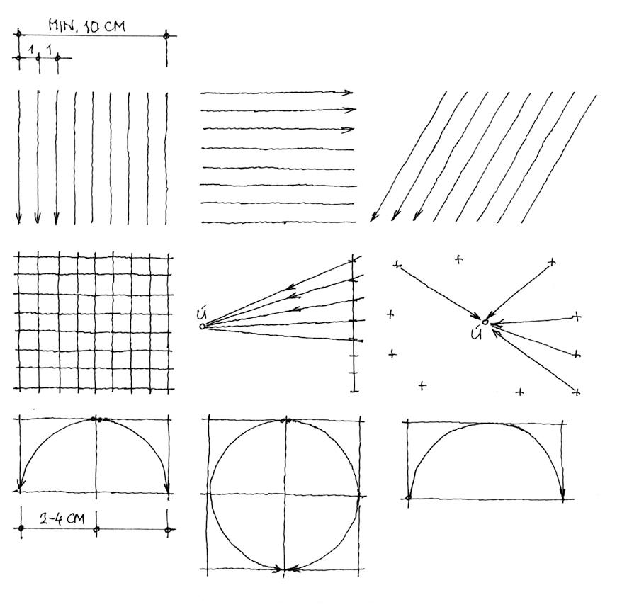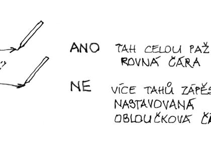 Obr. 5 Nácvik základních tahů tužkou a perem. Kontrolujeme stejnost provedení linky