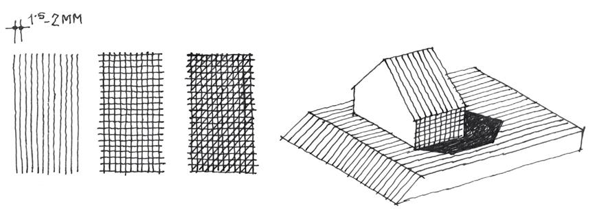 Obr. 7 Technické šrafování – vyjádření různé tmavosti a sklonů ploch