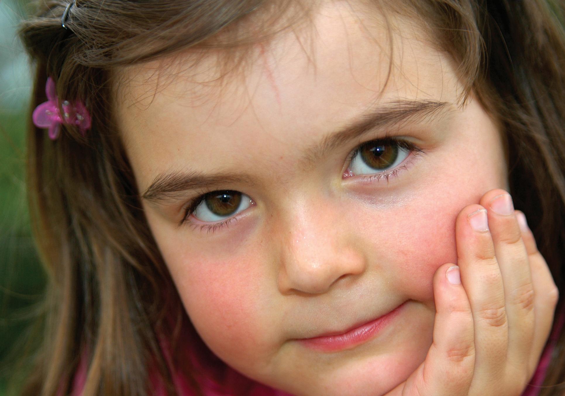 Pasivníublinkávání.Flegmatické,mohutnějšídítě. Potísezáhlaví.