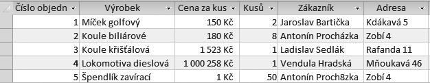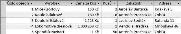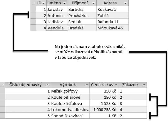 V relačních databázích, jaké používá například Access, nejsou data uspořádána v jedné tabulce, jako tomu bylo v případě Excelu, ale jsou uložena do několika samostatných tabulek, které jsou spolu provázány logickými vztahy, tzv. relacemi. Později si vysvětlíme, jak se s relacemi pracuje, ale v této chvíli se zaměříme jen na to, jak se jejich použití projeví v našem „objednávkovém“ příkladu.