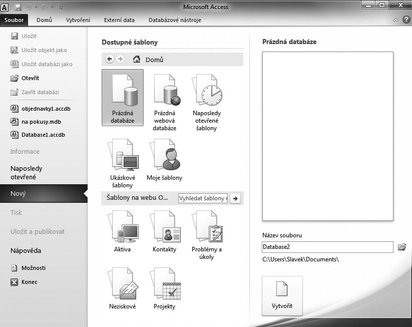 Pojďme si podrobněji ukázat alespoň ty nejdůležitější ovládací prvky Accessu 2010.