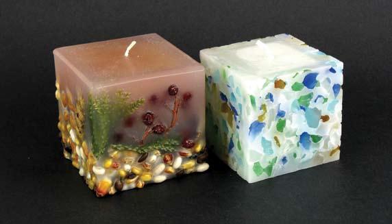 skládající se ze dvou bubnů, mezi nimiž byla lázeň s roztopeným voskem. Jím se protahoval knot přes šablonu sem a tam, přičemž na sebe nabaloval stále více vosku, až nakonec vznikl jakýsi nekonečný voskový drát, ze kterého se motáním, rolováním, splétáním apod. vytvářely nejen svíčky, ale i různé dekorační předměty. Voskaři již také dokonale ovládali odlévání voskových ozdob, tvarování vosku za tepla apod. Jsou to pro naši ruční tvořivost neocenitelné zkušenosti, z nichž v podstatě vycházíme a na nichž stavíme naše současné techniky. Až s objevem parafínu se začínají svíčky vyrábět průmyslově, ovšem jejich život prakticky končí s vynálezem žárovky. Od té doby plní funkci náhradního světla, funkci dekorační, rituální apod. V této fázi také končí voskařské řemeslo a zapadá téměř v zapomnění. Teprve v minulém století opět zažívají svíčky svůj velký rozmach, neboť se stávají vítaným dekoračním předmětem interiérů, slouží pro navození příjemné atmosféry při nejrůznějších rodinných i společenských událostech a v neposlední řadě jako nová technika pro ruční tvorbu a volný čas. V posledních letech se na trhu objevilo mnoho nových výrobků usnadňujících výrobu svíček, a to nejrůznější formy a materiály. My jich samozřejmě budeme hojně užívat, ale pokusíme se navázat i na tradici a zkušenosti starých mistrů voskařů. Využijeme jejich technik tvarování vosku za tepla, které budeme aplikovat na dnešní moderní materiály, a vytvoříme nové tvary a modely.