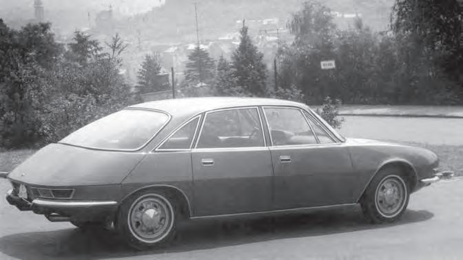 ních kol na trojúhelníkových vlečených ramenech se šikmou osou kývání, bezpečnost výrazně zvyšovala dvojice navzájem propojených palivových nádrží umístěných v chráněné zóně pod zadními sedadly, po obou stranách převodovky. Představy o tom, že pohon nového vozu obstará modernizovaný osmiválec typu T 603 K, tedy motor V8 s rozvodem OHV, objemem 2,5 l a již zmíněným uspořádáním rozvodovky, vzaly brzy za své. Neuspěl ani kopřivnický návrh vzduchem chlazeného řadového šestiválce 3,2 l umístěného napříč za zadní nápravou, tradice si žádala válců osm – logika vyšší výkon a točivý moment. To vše nabízel motor V8 s rozvodem DOHC a dvojicí vačkových hřídelů v hlavě každé řady válců navržený pražskou konstrukční kanceláří a realizovaný v Kopřivnici. Jeho objem byl stanoven na 3,5 l, což byl kompromis mezi původními návrhy kopřivnické a pražské konstrukce.