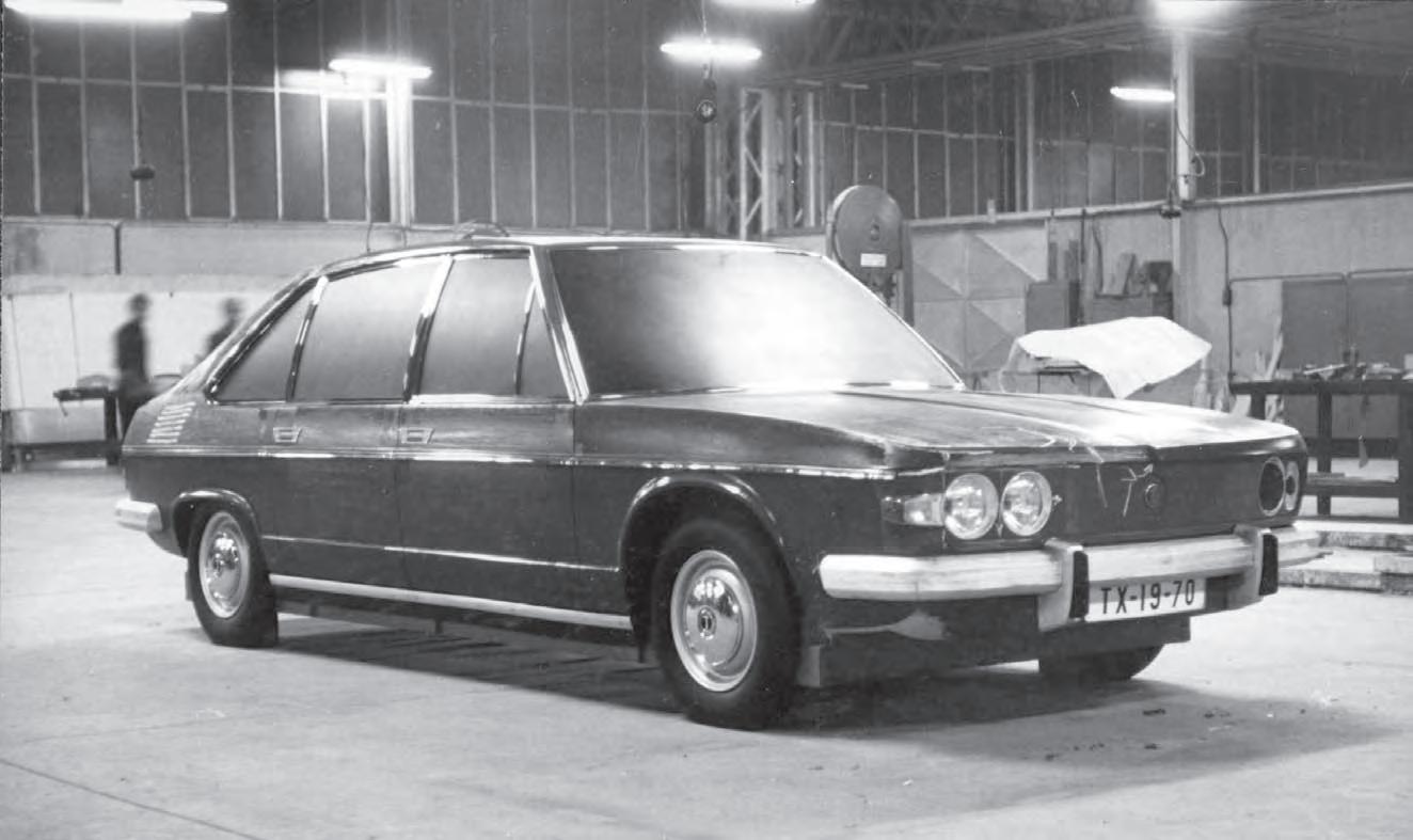 613 místěním karburátorů, čističů vzduchu a tlumičů výfuku do stran a vytvořením nového sacího a výfukového potrubí dokázali stavební výšku osmiválce snížit o 270 mm, tedy o více než třetinu. Z pětice tvarových návrhů se nakonec prosadila varianta X-5, jejímž hlavním autorem byl Ing. Ján Cina. Design navazoval na tradiční aerodynamické linie značky Tatra, ovšem v moderním pojetí a sportovnějším střihu. Po několikaměsíční přestávce způsobené poněkud neujasněnými vztahy mezi mateřskou automobilkou a jejím bratislavským pracovištěm přišel v létě 1966 příkaz ke stavbě funkčního vzorku automobilu s označením