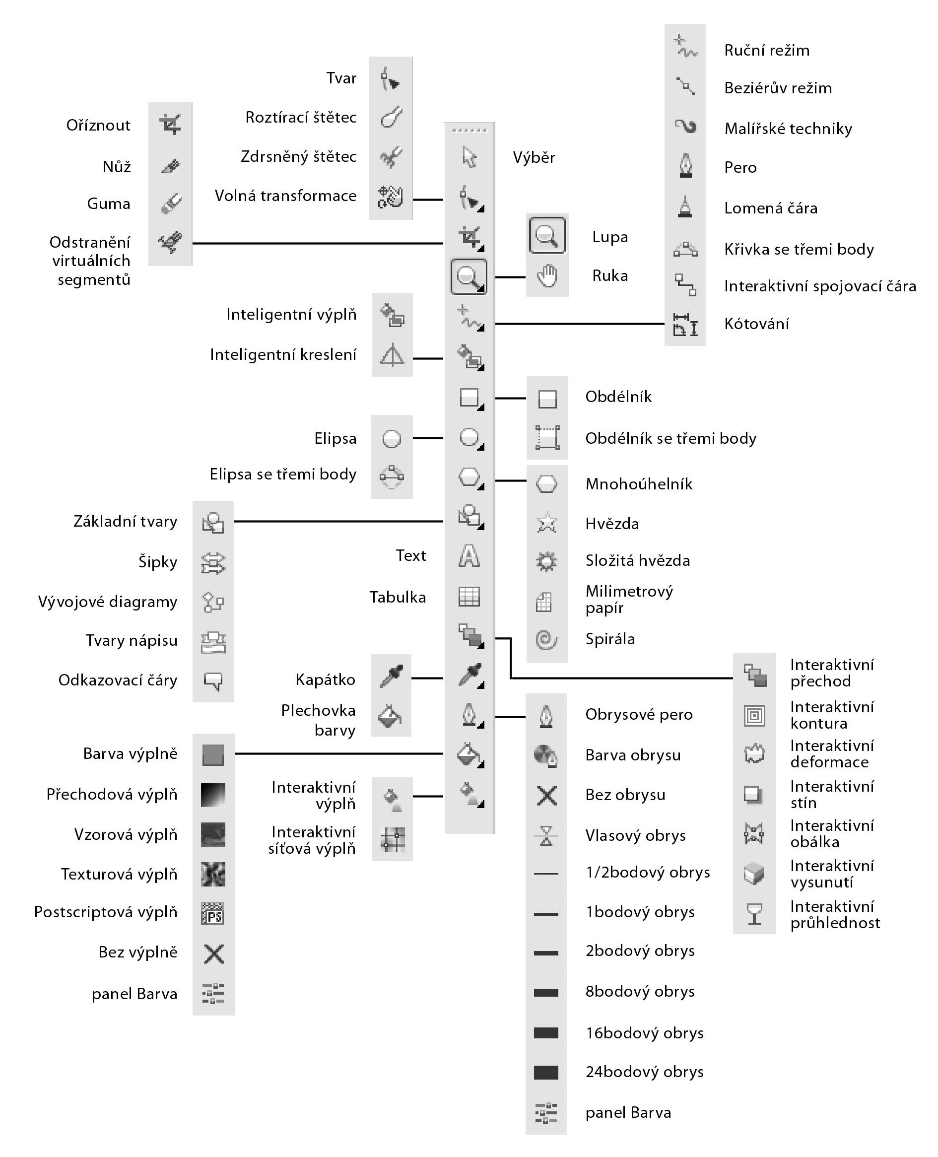 Poslední verze programu, dodávaná v balíku CorelDRAW Graphics Suite X4 společně s bitmapovým editorem PHOTO-PAINT a utilitou pro snímání obrazovky Corel CAPTURE, přináší opět řadu nových funkcí, avšak samotný způsob ovládání a kreslení zůstává oproti starším verzím prakticky nezměněn. Proto by bylo zbytečné znovu a znovu detailně rozebírat všechny nástroje a funkce programu. To už bylo popsáno v řadě publikací o předchozích verzích, a navíc CorelDRAW nyní obsahuje propracovaný systém interaktivní nápovědy a řadu tutoriálů, díky kterým si ovládání programu jistě rychle osvojíte. Základy kreslení a editace jsou tedy v této knize popsány pouze stručně a více prostoru je věnováno především využití programu v běžné praxi. Takže oproti manuálu zde nebudu probírat jednotlivé funkce a jejich vlastnosti, ale spíše se zaměřím na praktické situace a jejich řešení.