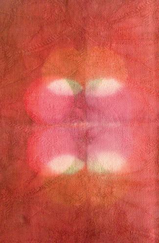 Textilní barviva nejsou krycí, takže po sobě nanášené odstíny se opticky sčítají, nikoliv překrývají. Při míchání barev nezapomeňte, že mokrý substrát/látka je vždy tmavší, než v suchém stavu. To je zřejmé z ukázky (spodní polovina látky je navlhčená)