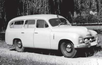 Sanitní Škoda 1200 měla prodloužený zadní převis a sklopné dveře v zádi