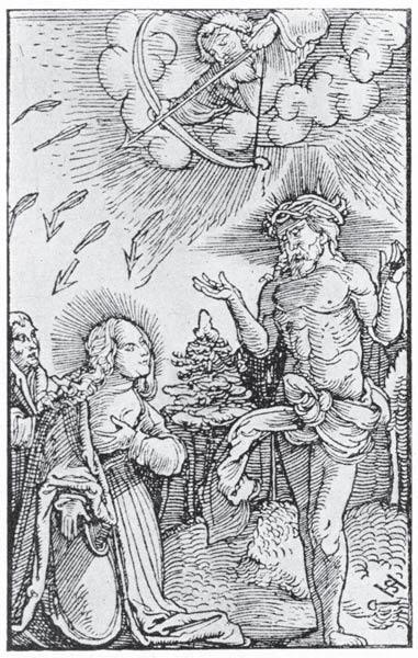 16. a 17. století zobrazuje Boha Otce vrhajícího na lidstvo morové rány a Pannu Marii vyprošující milost u Krista.