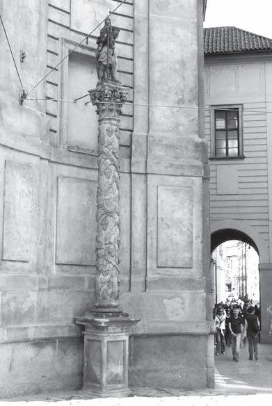náměstí z r. 1676 je nejstarším dochovaným sakrálním sloupem v Praze. Do souboru mariánských a morových sloupů jej však nelze zařadit pro odlišnou ikonografii i určení.