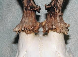 Souãástí kostry lebky je horní adolní ãelist, znichÏ vyrÛstají zuby. Chrup srnãí zvûfie je heterodontní, tedy rozli‰en˘ na fiezáky (dentes incisivi), ‰piãáky (dentes canini), tfienové zuby (dentes praemolares) astoliãky (dentes molares). Poãet atyp jednotliv˘ch zubÛ vpolovinû ãelisti vyjadfiuje zubní vzorec, kter˘ má udospûlého jedince tvar 0033/3133. Celkov˘ poãet je tedy 32 zubÛ. Chrup srnce obecného je difyodontní – mláìatÛm vyrÛstá mléãn˘ chrup, kter˘ je po urãité dobû nahrazen chrupem trval˘m. Charakteristick˘m znakem mléãného chrupu je absence stoliãek, zubní vzorec pak je 003/313. Z hlediska mysliveckého je dÛleÏité zmínit, Ïe na puãnicích (coÏ jsou v˘rÛstky kosti ãelní) vyrÛstají samcÛm parohy. Jsou kostûn˘m produktem jelenovit˘ch sudokopytníkÛ apfiedstavují typick˘ sekundární pohlavní znak samcÛ (pouze usoba nosí parohy isamice!). Popisu parohu, jeho stavbû, v˘voji adal‰ím nezbytn˘m informacím t˘kajícím se paroÏení je vûnována samostatná kapitola.