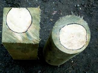 dřevo zabudované do země nebo vody (i částečně) (sloupy, pražce, chlad. věže)