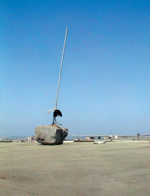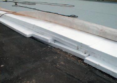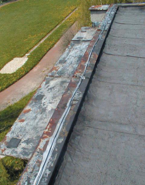 Obrázek 2.3 Závada zapříčiněná dodavatelem − uložení jímací tyče hromosvodu na plynosilikátové tvárnici, která navíc volně spočívá na střešní hydroizolaci