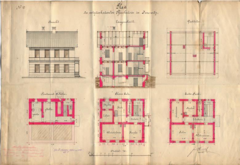 projekty, zejména menšího rozsahu, jsou leckdy vypracovávány projektanty, kteří ne- –mají potřebnou kvalifikaci. Často, zejména v současné době, jsou prováděny v časové tísni, kterou svými požadavky zapříčiňuje investor, tlak investora na nemístné ekonomické úspory, kterému projektant podlehne. Ať už se –jedná o novostavbu nebo rekonstrukci či rozšíření. V otázce, zda je nutno konstrukci zajistit či nikoliv, je často možné setkat se s tvrzením investorů „to nespadne“, „to vydrží“, „to unese“, které není ovšem nijak podloženo a má sloužit jako nátlak na projektanta, aby konstrukci nijak nezajišťoval, avšak aby vzal za její funkci záruku, čímž investorovi vzniknou ekonomické úspory, nedostatečný průzkum (často rovněž na nátlak investora). Za průzkum či odborný –posudek se sice v takovém případě ušetří určitá, často poměrně malá, finanční částka, avšak následující ztráta může být mnohem větší. V případě havárie nosné konstrukce pak už zpravidla nejde jen o ztrátu ekonomickou, ale i na lidském zdraví a životech. Při projektování rekonstrukcí, sanací, rozšíření apod., tedy při zásahu do stávajícího objektu, je nutné, kromě zajištění všech příslušných průzkumů, vždy pátrat po původní projektové dokumentaci (u investora, v archivech atd.), včetně všech přestaveb objektu a jeho rekonstrukcí. Ukázka z výkresu dobové projektové dokumentace je uvedena na obrázku 2.2.