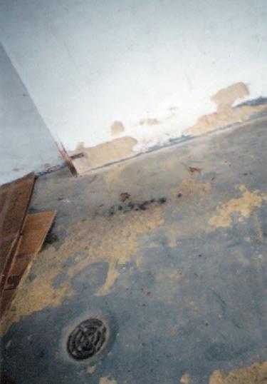 2.11 Destrukce omítky a nášlapné vrstvy podlahy v suterénu následkem zaplavení vodou uniklou z kanalizace