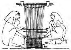 Kresba z Beni Hasan z 18. století př. n. l. z tkalcovské dílny dosvědčuje, že v Egyptě se tkalo zřejmě v kleče a jen kousek nad zemí. Příze byla hlavně lněná, spřádaná velmi jemně. Len se pěstoval u chrámů, protože u toho kvalitního si museli kněží ohlídat agrotechnické lhůty a již od pěstování muselo být vše perfektní.