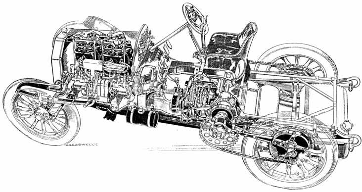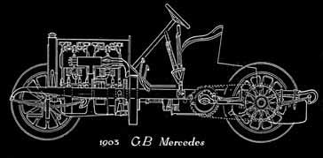 Obr. 1.20 Řez závodním Mercedesem z roku 1903 s řetězovým pohonem