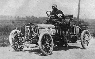 Obr. 1.5 Francouz Léon Théry na čtyřválci Richard Brasier, vítěz ceny Gordon Bennetta v roce 1904 s motorem o výkonu 60 kW (80 k) a v roce 1905 (75 kW, 100 k)