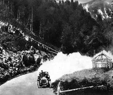 První z nich vyhrál 14. 6. 1900 na trati Paříž-Lyon opět Charron na Panhard-Levassoru s průměrem už 65,85 km/hod, v roce 1901 na oblíbené trati Paříž-Bordeaux zvítězil Girardot na voze téže značky (obr. 1.2). V třetím závodě (26.–28. 6. 1902), původně proponovaném na trati Paříž-Vídeň a předčasně ukončeném v Innsbrucku, byl vyhodnocen jako vítěz Edge na anglickém Napieru (obr. 1.3). Podle pravidel měl být příští závod uspořádán podle národnosti vítěze v roce 1903 v Anglii, ale tam nebyly závody na neuzavřených tratích povoleny. A tak se poprvé v historii za účasti jezdců z Anglie, Francie, Německa a USA závodilo na uzavřeném okruhu v irském Dublinu. Zvítězil Belgičan Jenatzy na Mercedesu vysokým průměrem 89,18 km/hod (obr. 1.4). Dalšími dvěma závody na okruzích Taurus v Německu (1904) a v Auvergne ve Francii (1905) Gordon Bennettova cena skončila. Oba poslední závody vyhrál Francouz Léon Théry na voze Richard Brasier (obr. 1.5). V roce 1903 byl vypsán prestižní, ale svým průběhem tragický závod na velmi dlouhé trati z Paříže do Madridu, který natrvalo změnil charakter závodů. Skončil předčasně už po 548 km v Bordeaux. Navzdory policejním opatřením bylo při řadě nehod usmrceno přes tucet osob, jak jezdců, tak diváků, u Bordeaux se smrtelně zranil i jeden z bratří Renaultů, Marcel (obr. 1.6). O charakteru závodu svědčí situace na obrázku 1.7, kdy neukáznění diváci stojí těsně vedle tratě – to se ostatně při rallye často děje dodnes. Zvědavé dámy si zřejmě vůbec neuvědomovaly, co může