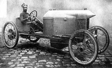 Obr. 1.10 Vůz Clement Bayard z roku 1904 byl koncipován s ohledem na minimální čelní plochu, s trubkovým chladičem a nádrží mezi motorem a jezdcem