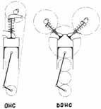 s motorem OHV (obr. 2.18) a téhož roku už měl Clément Bayard rozvod OHC. Po přestávce po první sérii závodů GP se objevil Peugeot s rozvodem DOHC, Fiat a Mercedes s OHC a na shora řízené ventily přešli po roce 1912 i jinak konzervativní Angličané. V roce 1914 už jely na GP Francie všechny vozy s rozvodem OHC nebo DOHC, s pohonem vaček v hlavě motoru královskou hřídelí s kuželovými koly (Peugeot, Mercedes) nebo šnekem a Švýcar Henri už přešel na technologicky jednoduché a spolehlivé řešení náhonu vačkových hřídelí řadou čelních ozubených kol.