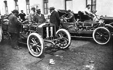 V úplných počátcích stavby závodních strojů značně převažovaly zvídavost a odborný zájem nad ekonomickými a společenskými hledisky. Tvůrčí nadšení bořilo konvenční přehrady mezi lidmi a bez ohledu na postavení ve společnosti se spojovali všichni, kdo měli o auta zájem. Hrabě de Dion, příslušník pařížské smetánky, založil v té době úspěšnou firmu se zámečníkem Boutonem z předměstí. Často byl konstruktér, výrobce a jezdec jedna a tatáž osoba. Z počáteční chaotické individuální činnosti se rychle začaly formovat průmyslové a národní zájmy. V roce 1905 se v automobilovém závodním sportu už jasně rýsovala struktura výrobní a finanční sféry. Mezi výrobci tehdy dominovaly francouzské a německé značky, vstup na scénu připravovali Italové. V pozadí zatím zůstávali Angličané a Američané, začínalo se i na území