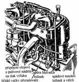 uložená na třech ložiskách o průměru čepů 55 mm, výstélky ložisek kliky i ojnic měly cínovou kompozici. Palivem byl benzin. Mazání se používalo rozstřikové (obr. 2.26), zapalování o nízkém napětí s kontaktními svíčkami (obr. 2.27).