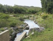 V blízkosti čajového domku je vždy umístěn kámen vytvářející nádržku na vodu pro potřeby čajového obřadu. Do něj ústí bambusový přepad vody a na okraji je položena naběračka na vodu.