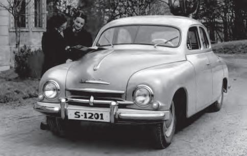 Sériový automobil Škoda 1200 Sedan na snímku ze Švédska Sedan na obrázku z dobového prospektu Motokovu