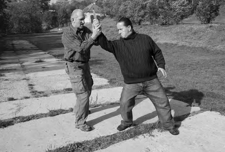 Určitě se každý znás dostal nebo dostane do situace, kdy bude nucen hájit sebe asvé zájmy vůči jiným. Narůstá případů, kdy nestačí domluva, azdruhé strany není ani přijata. Dochází ke střetu aten bývá zpravidla vyřešen jen pro tu stranu, která je na tom lépe psychicky, fyzicky, ato bez ohledu na to, je-li vprávu či není. Člověk by měl být připraven na náhodný střet, nechce-li se vzdát bez boje. Měl by se naučit bránit. Nejlepší je naučit se svůj styl aten potom použít vnouzi. Zvolené techniky by měly být jednoduché aúčinné, jsou-li správně apohotově nasazeny. Atakové techniky jsou vtéto knize popsané avyobrazené, jak se jim dobře adostatečně naučit. Vycházel jsem zpravidla, že ne všichni jsou obdarováni talentem pohyblivosti, síly azdatnosti. Proto jsem přizpůsobil tuto metodiku tak, aby byla přístupná ilaickému oku.