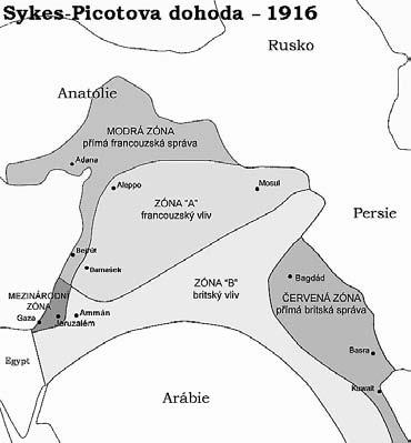 Británie a Francie uzavřely (s přihlédnutím k zájmům Ruska) tajnou dohodu, která upravovala poválečné rozdělení Blízkého východu (tedy rozdělení dědictví Osmanské říše, včetně Palestiny). Poválečné zveřejnění dohody velmi pobouřilo Araby, kteří během války Británii výrazně pomohli s vítězstvím na Blízkém východě. Dohoda totiž zcela otevřeně počítala s porušením britských slibů.