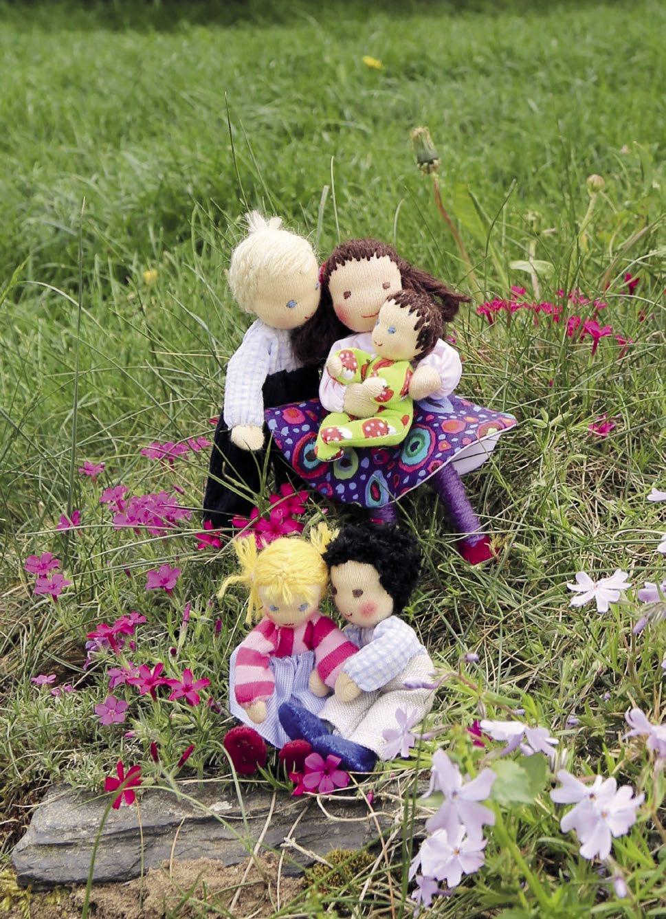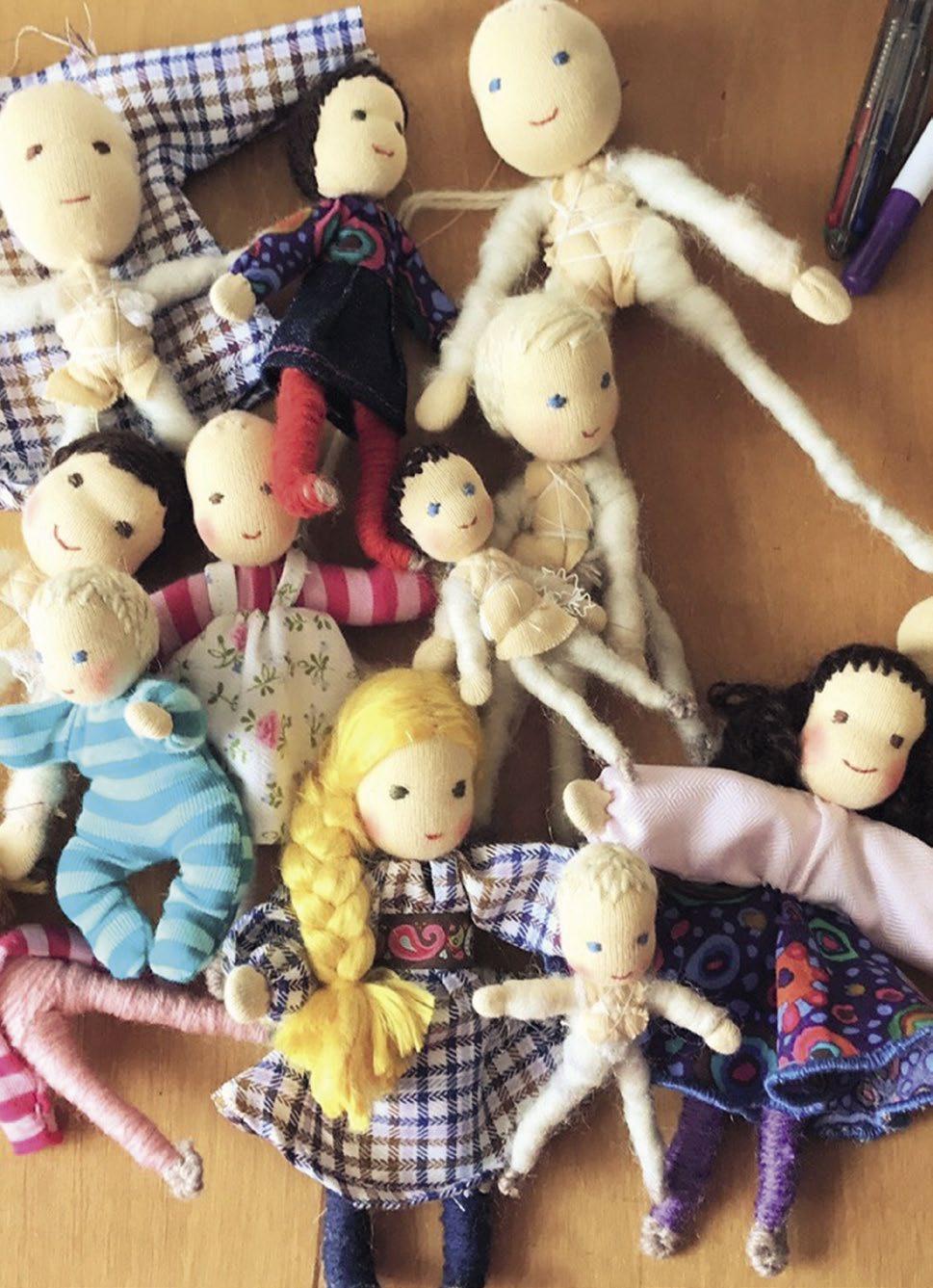 Nastal tedy čas pro vlastní tvořivost. Po čase jsem narazila na maličké waldorfské panenky za relativně vysokou cenu (kterou dnes, vzhledem k pracnosti výroby, již chápu). Přesto se mi ale zdály zbytečně velké v porovnání s nábytečkem, který jsem měla k dispozici. ale protože mě okouzlily, rozhodla jsem si zkusit takové, jen trochu menší, vyrobit. a to nejen kvůli finanční úspoře, ale také kvůli radosti z tvoření, objevování nových postupů a hlavně možnosti udělat si přesně takové panenky, jaké sama chci.