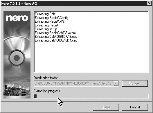 Instalátor Nero 6 vám zde navíc umožní určit, kde na pevném disku bude program nainstalován. Samo Nero navrhuje složku C:\Program Files\Ahead Umístění neměňte, nemáte-li k tomu zvlášť dobrý důvod (a to obvykle nemáte); v opačném případě využijte služeb tlačítka Procházet