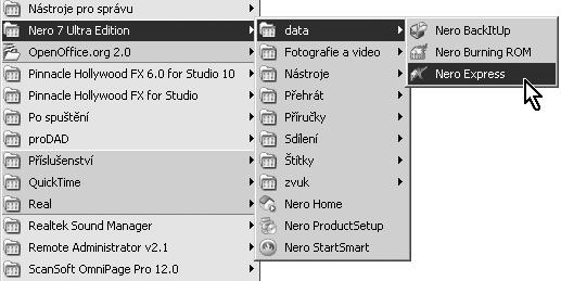 Obr. 1.13: Spouštění z nabídky Start (Nero 6)