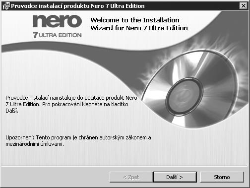 Průvodce instalací produktu Nero 7 Ultra Edition – viz obr. 1.4.