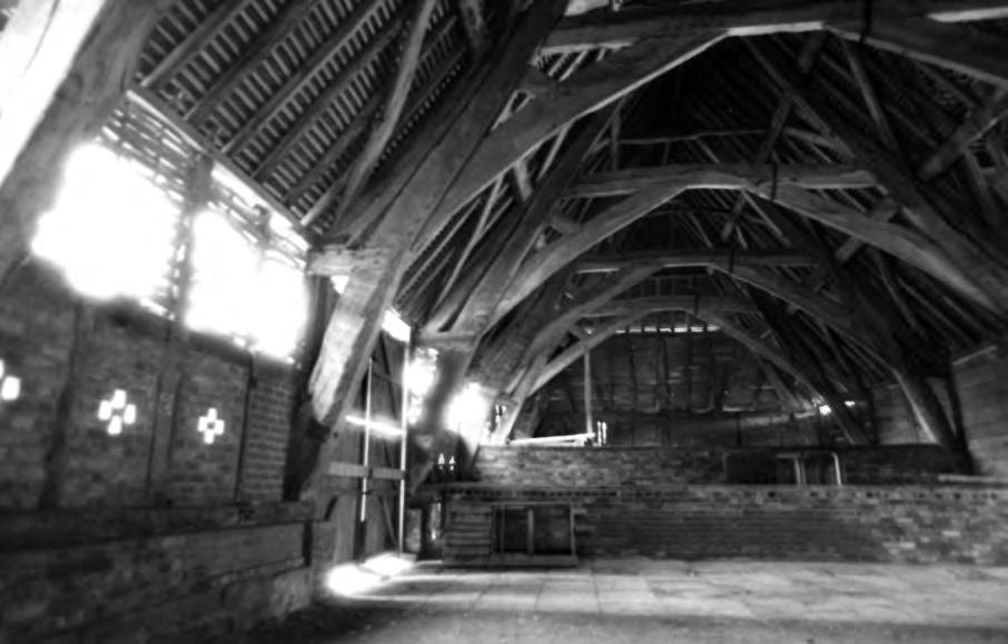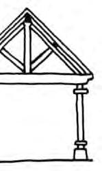 mu rám okapových vaznic. K nim se připojovaly nízké lehké rámové stěny velmi jednoduše vložené mezi okapovou vaznici a vaznici pat každé řady sloupů. To postupně vedlo k vytváření hrázděných stěn podpírajících konce sponového trámu nesoucího okapovou vaznici střechy. Později se lomeného oblouku používalo jako nástavby nad rovnými sloupy umožňujícími stavbu vícelodní haly, a to nejen u stodol, ale i u kostelů. Jedny z nejstarších střešních zakřivených konstrukcí se dochovaly na velkých stodolách (ze 14. stol. např. v Leigh, Worcestershire), zvláště v severnějších oblastech, na domech ze stejného období více v jižní a středozápadní části země a také ve Walesu. Tato