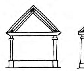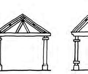 Schematická interpretace krovů znázorněných na kachlích nalezených v římské pevnosti Carnuntum u Vídně (podle R. Meringera a V. Frolce)