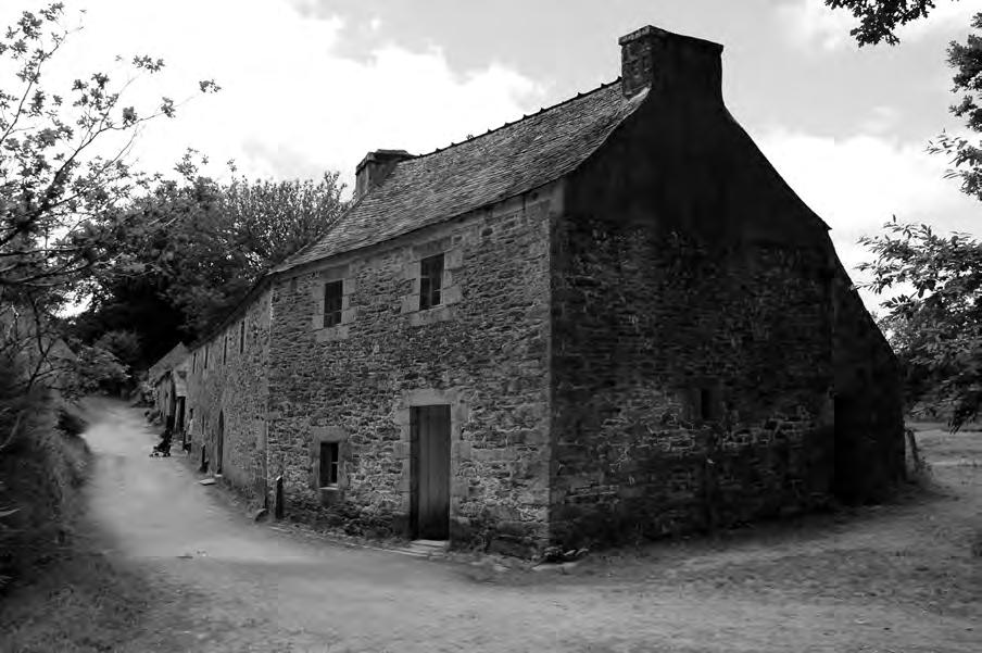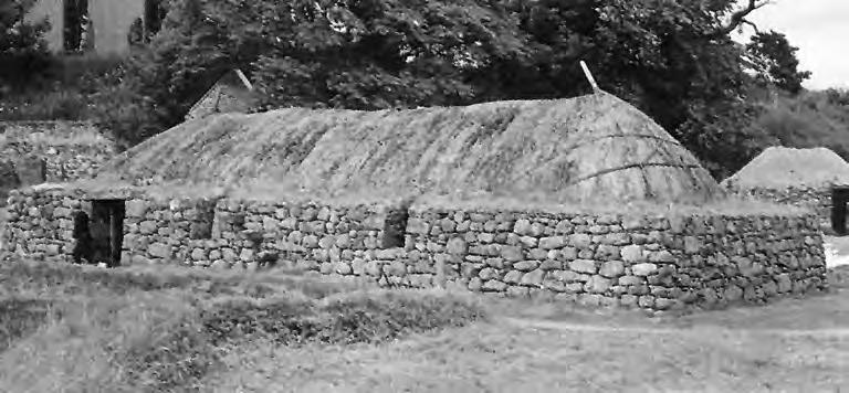 otvor u střešního hřebenu. Stodoly, kovárna, mlýn s vertikální hřídelí stály samostatně, stejně jako opodál malé jednoprostorové chýše bezzemků. Ross Nobel v 60. letech 20. stol. poznal bydlení rodiny ve střešním domě Skotské vysočiny a po r. 1991 takovou osadu zrekonstruoval v nové části muzea v nedalekém Newtonmore.