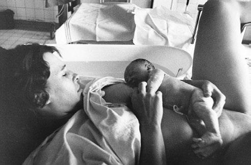 Obr. 1 Novorozené dítě je ihned po porodu položeno na tělo matky, která je objímá a pokouší se o pohled z očí do očí. (Foto F. Chlumecký, Nemocnice Hustopeče)
