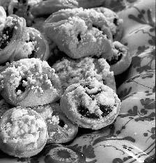 Náplň: Mák přelijeme horkým mlékem, přidáme pískový a vanilinový cukr, prosáté koření, citronovou šťávu, nahrubo nakrájené ořechy, citronát, propláchnuté a odkapané rozinky, podle potřeby zředíme mlékem a dochutíme rumem na vláčnou náplň.