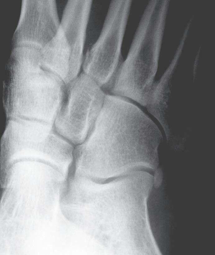 O br. 1.3 Skia g ram nohy v předozadní pro j ekci – akcesorní kůstka laterálně od k alkaneokuboidálního skloubení (os p eroneum)