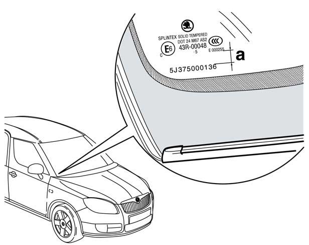 Kód VIN je vyražen v levém spodním rohu předního okna (OBR. 1) a na pravém uložení tlumičové vzpěry (OBR. 2) Navíc je na každém skle z důvodu zvýšení ochrany vozidla před odcizením vyznačeno (laserem) posledních 11 znaků identifikačního čísla vozidla (OBR. 3A3C). Od prosince 2006 již nejsou značena čelní skla.