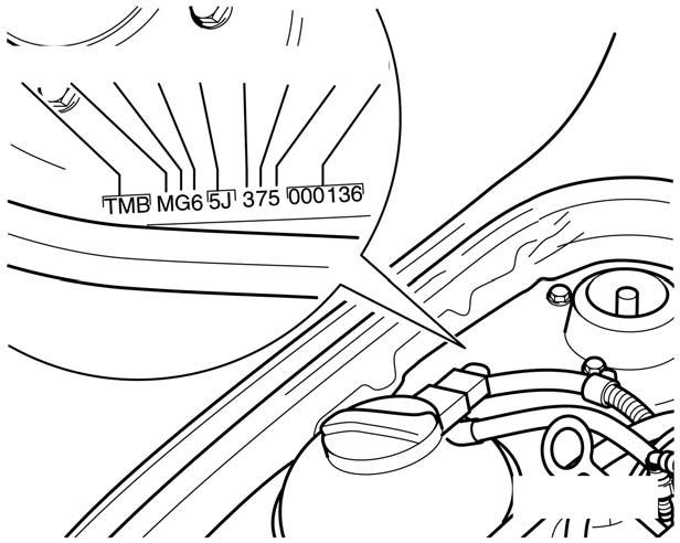 OBR. 2 IDENTIFIKAČNÍ ČÍSLO VOZIDLA NA PRAVÉM ULOŽENÍ TLUMIČOVÉ VZPĚRY OBR. 3A PŘEDNÍ SKLO UMÍSTĚNÍ POSLEDNÍCH 11 ZNAKŮ IDENTIFIKAČNÍHO ČÍSLA VOZIDLA